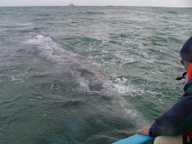 Here Elizabeth gets to stroke a 55 foot Whale. |