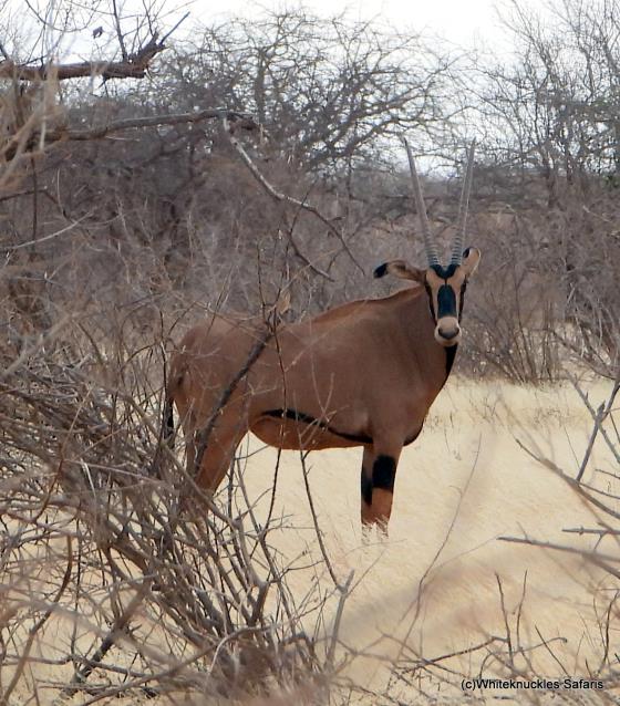 As we drive south we meet wildlife such as this Fringe-eared Oryx |