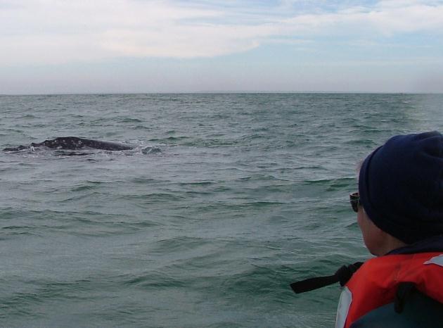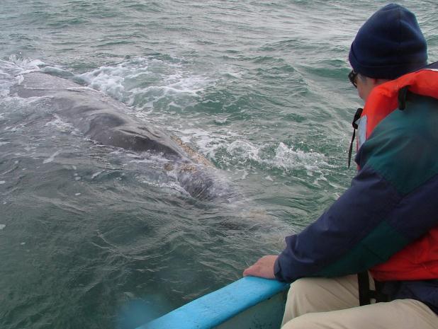 Here Elizabeth gets to stroke a 55 foot Whale. |