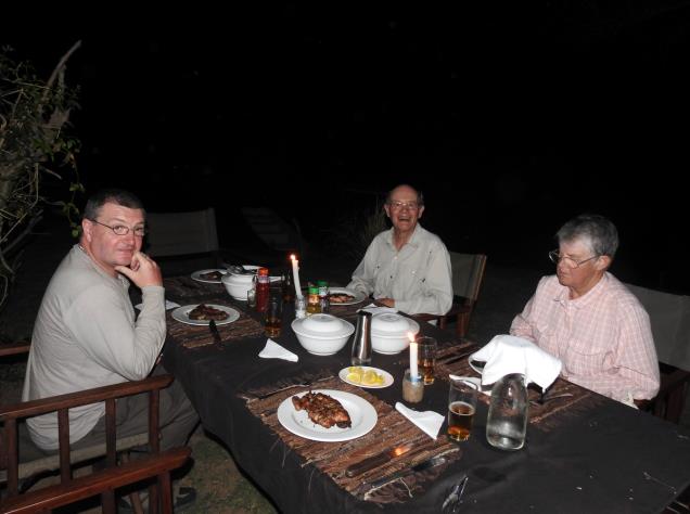 Dinner of steak under the stars. |