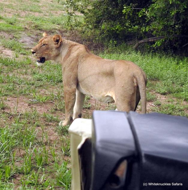 She just walks out of the bush and in front of our vehicle. |
