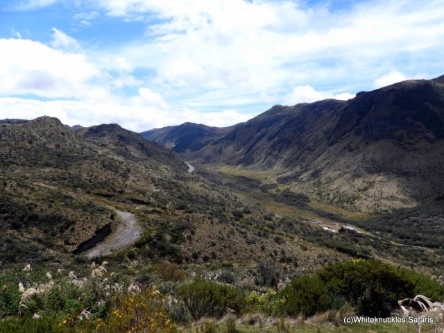 Papallacta Pass. Main road in the valley. Old track ahead. |