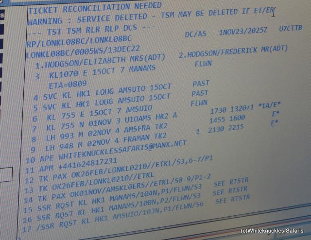 Our itinerary we had to photograph having been re-routed. Quito KLM. |