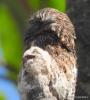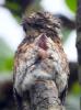 Andean Pottoo, with chick. Drying after rain. |
