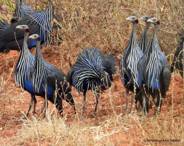 Vulturine GuineaFowl are common in Tsavo. |